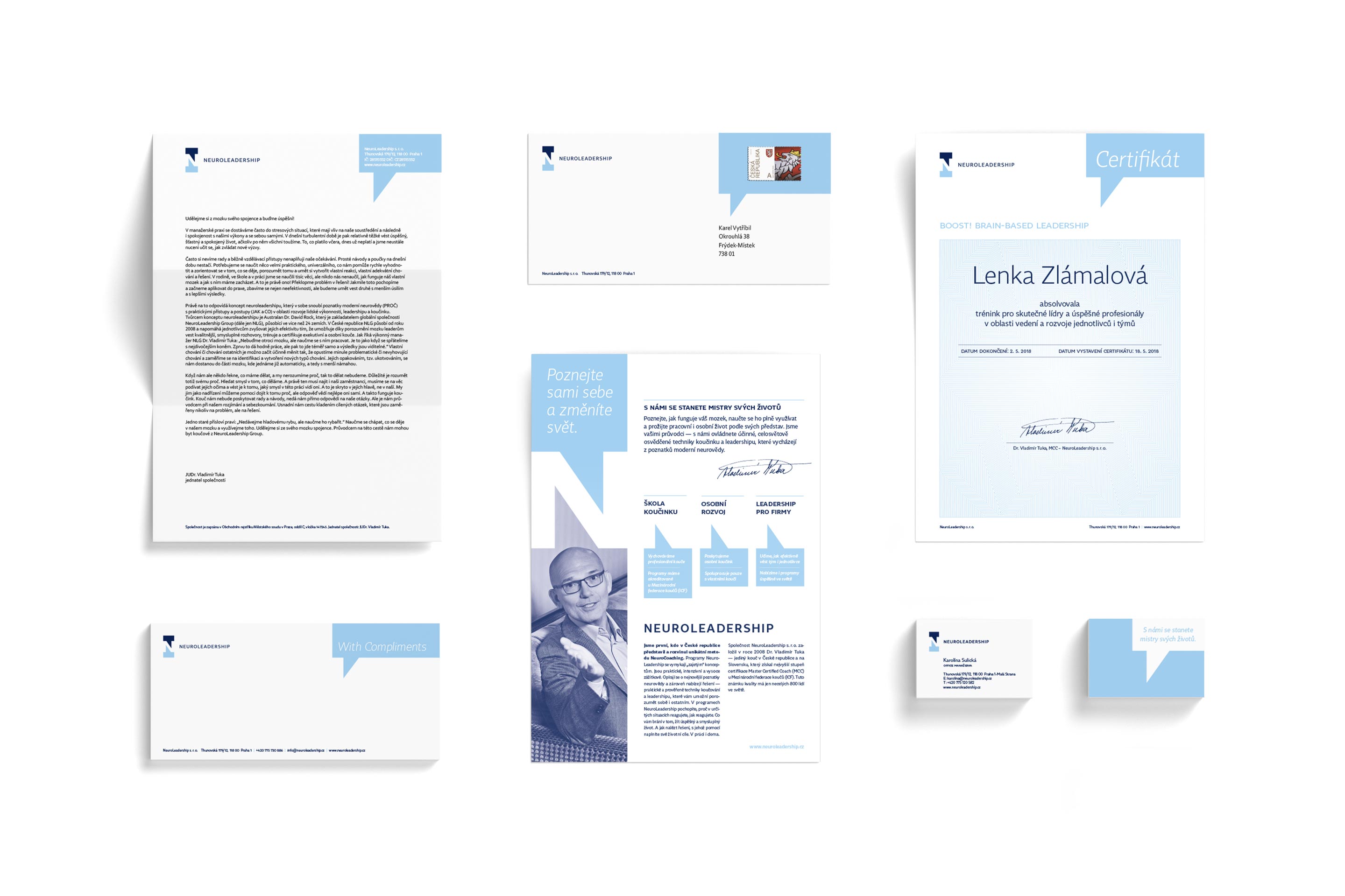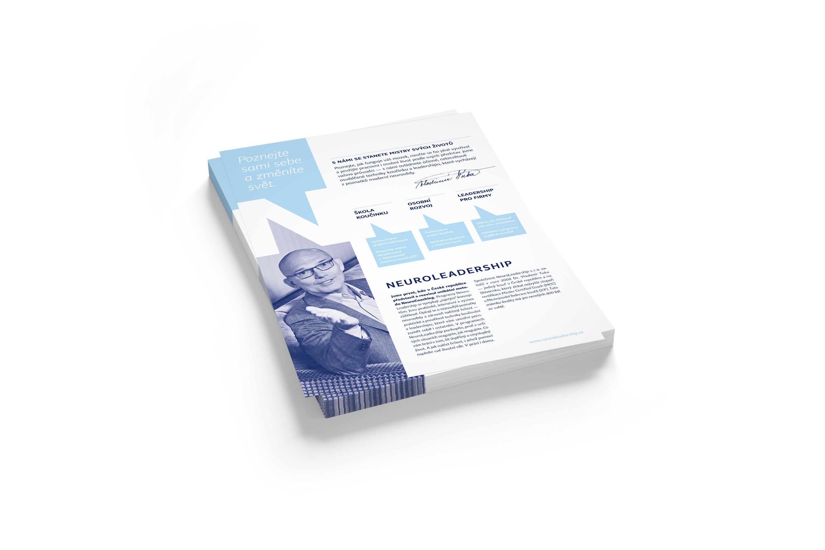 N jako Neuroleadership — to jsou unikátní koučovací programy opírající se o nejnovější poznatky v neurovědě. Základem vizuálního stylu je motiv vzájemné komunikace a hra s jejím obsahem.