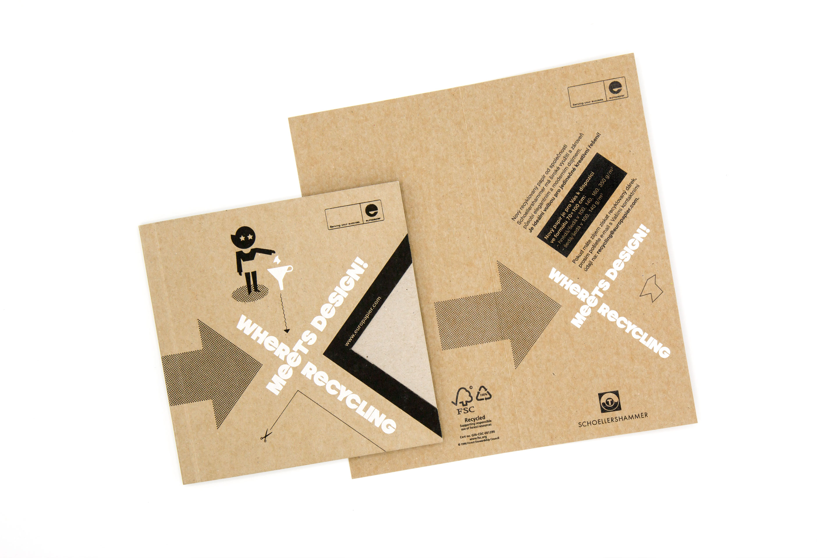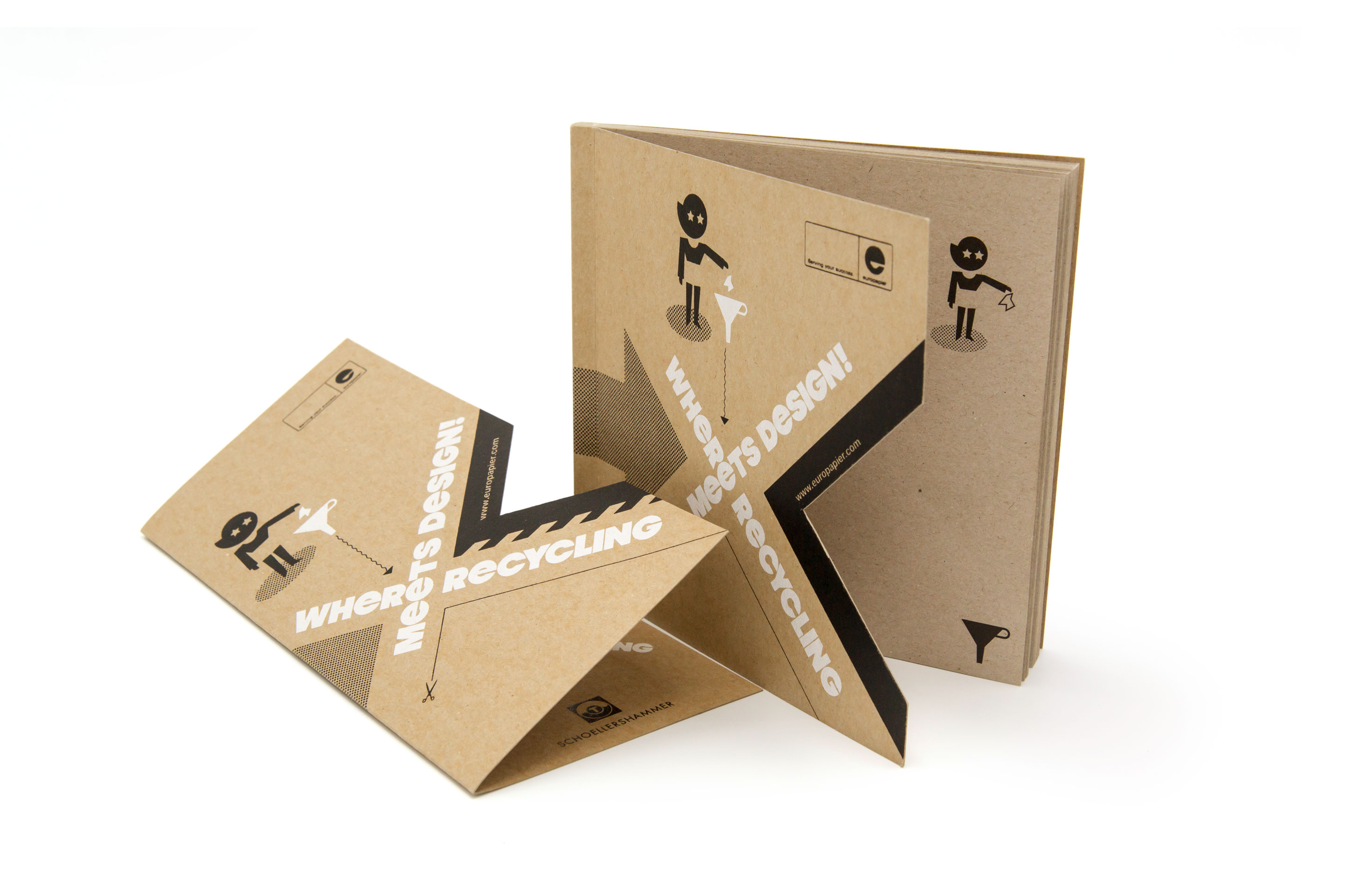 Série kreativních materiálů propagujících nové recyklované papíry na českém trhu. Při rychlém listování blokem papír „padá“ do koše v levém dolním rohu. Tištěno sítotiskem a vysekáno.